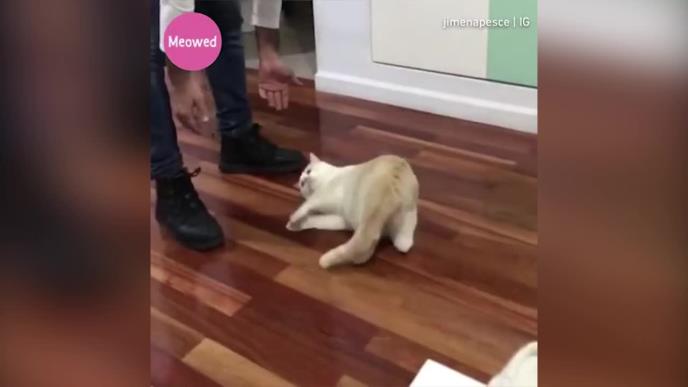 MAČEĆA IGRA KOJOJ NEMA KRAJA! Ova prelepa bela maca najviše voli da se kliza po parketu (VIDEO)