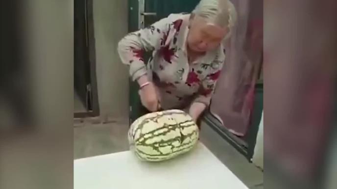 Avgust je stvoren za lubenice. Mladi i stari ih obožavaju. Naročito naše bake. Tako je jedna baka htela da svoje prijatelje počasti lubenicom i počela je da je seče. Ali se lubenica nije „dala“. Zao je baka pokušala oprobani recept- malo jače udariti lubenicu o sto na kojem je sečete. I evo šta se onda dogodilo!