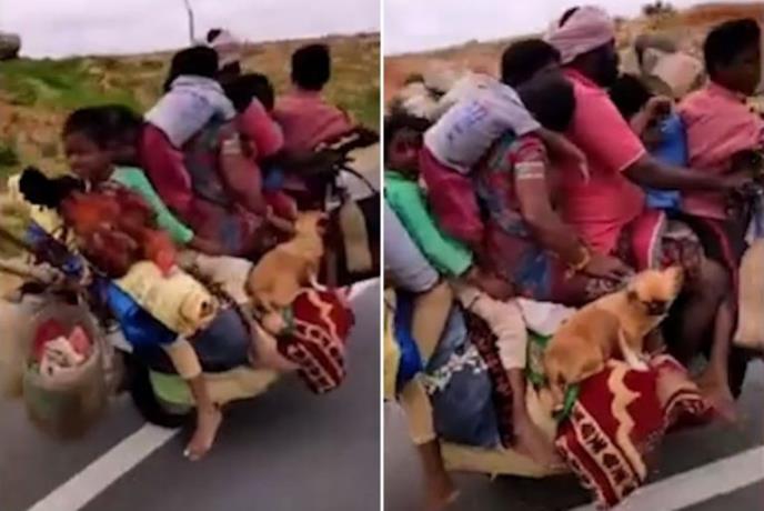 Koliko ste najviše ljudi videli na jednom motociklu? Troje? Četvoro? E, pa to nije ništa! Ovaj Indijac "spakovao" je šestoro dece, dva psa i hrpu prtljaga na motor koji je upravljao.