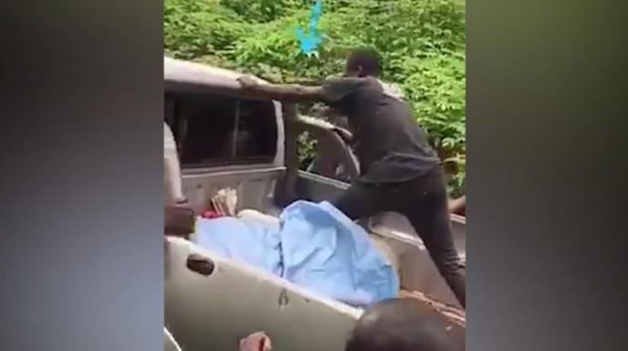 Kamionet se zaglavio u blatu i svi su priskočili u pomoć da ga guraju.