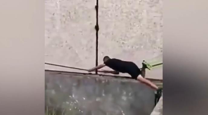 KAKAV PAD! Samo što je stigao do cilja, desila mu se nezgoda, pukao je kanap, a on je završio u ponoru (VIDEO)
