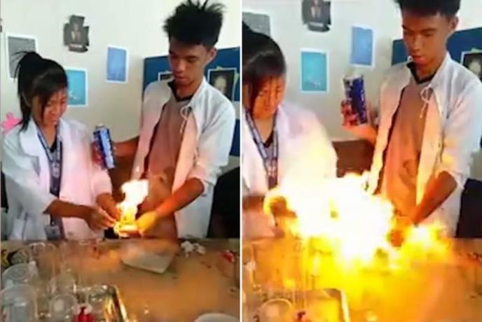 Dvoje filipinskih srednjoškolaca želelo je da pokaže eksperiment u kojem će vatru držati u šaci, ali su se stvari otele kontroli.