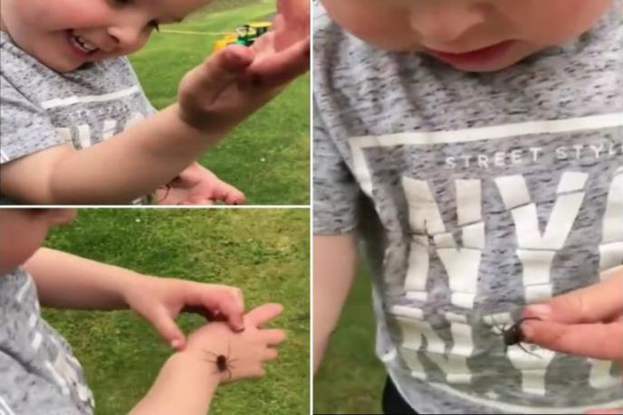 U dvorištu je pronašao pauka i umesto da vrisne i pokuša da ga otera, Erin je pauka pustio da šeta po njegovom telu. Njegovo oduševljenje novim drugarom izmamiće vam osmeh na lice.