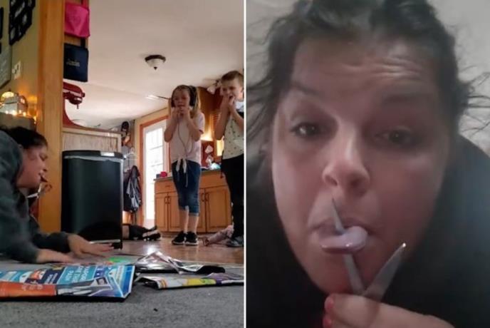 DECA VRIŠTE, MAMA LEŽI SA PROBODENIM JEZIKOM! Klinci joj nikada neće zaboraviti surovu šalu! (VIDEO)