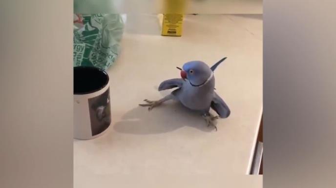 Ovom papagaju se toliko svideo drugi papagaj kojeg je video na šoljici za kafu, da ćete se slatko nasmejati kad vidite šta je sve radio.