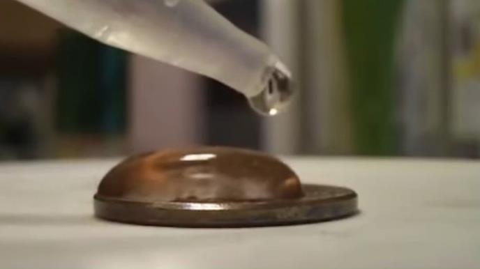 Takav je ovaj sa metalnim novčićem i kapima vode koje mogu stati na njega.