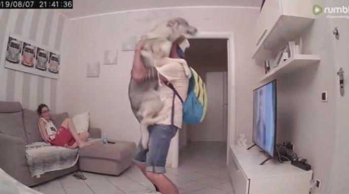 Nema ništa lepše nego kada vas umornog sa posla neko dočeka sa puno ljubavi i ushićenja, ali ovoliku radost ne viđamo svaki dan. Čovek je ušao u svoj stan i na vratima ga je dočekao njegov verni prijatelj, toliko srećan što ga vidi da mu je skočio u zagrljaj i bukvalno mu se popeo na glavu.