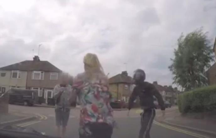 Žena je vozila svoj automobil kada je na kraju ulice uočila momka na skuteru i usporila, a onda je usledilo iznenađenje. Vozač motora nije krenuo unapred već je zaleteo skuter unazad ka njenim kolima i udario ih. Zatim je pustio motor i skočio na haubu, šokirana žena nije mogla da veruje šta se dešava.