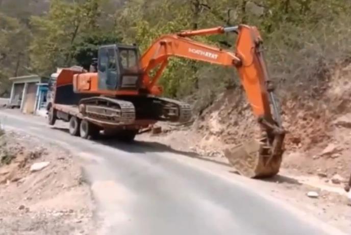 Kada je bagerista krenuo da se odguruje ogromnom kašikom u nameri da popne mašinu, ispostavilo se da kamion ne može da izdrži toliki teret. Podigli su mu se prvo prednji točkovi, a onda je i bager pao sa njega. Da stvar bude gora, mašina je potom skliznula sa puta, prevrnula se i krenula niz liticu.