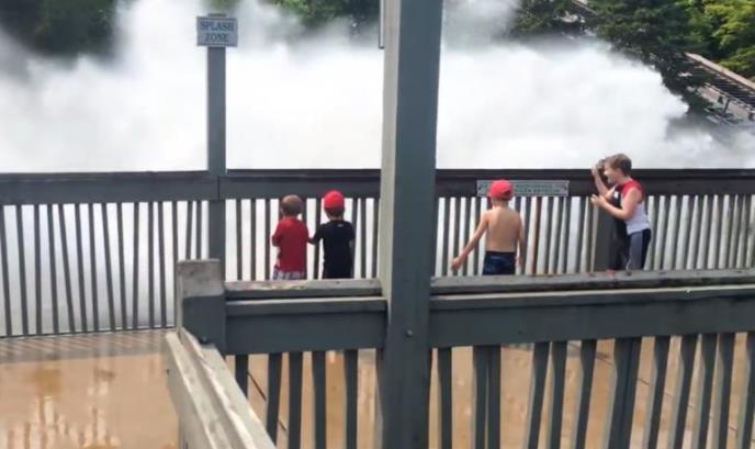 Doveo ih je na most ispod koga, kroz vodeni kanal prolazi brod i zapljuskuje sve oko sebe. Tata je sa decom čekao do zadnjeg trenutka, on je pobegao, a na decu je naišao veliki talas vode. Bili su mokri od glave do pete i ne baš oduševljeni tatinom šalom.