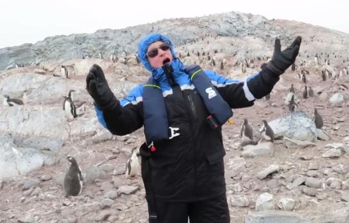 Naime, prilikom posete Antarktiku, Nik je odlučio da održi improvizovani nastup za neobičnu publiku-pingvine.
