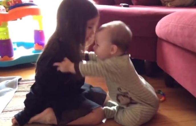Devojčica od 4 godine i njen brat od 10 meseci igraju se, pričaju nekim svojim jezikom, beba se napreže nekoliko puta da zagrli svoju sestru, a ono najlepše je koliko oboje uživaju u ovoj igri.