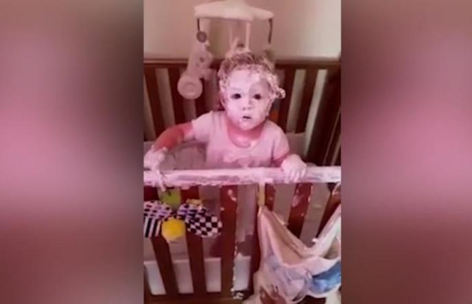 Ne samo da su otvorile kremu, već je starija devojčica uspela da mlađu potpuno prekrije kremom. Celo lice, kosa, ruke, krevetac, pod, sve je bilo umazano kremom.