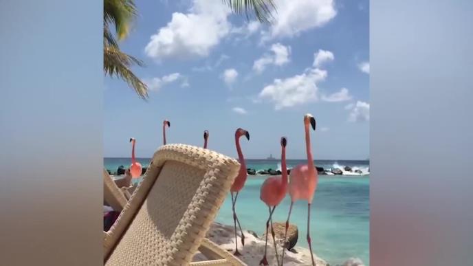 Maleno ostrvce Aruba koje se nalazi na Karibima, godinama slovi za veoma popularnu turističku destinaciju. Razlog zašto je tako leži u "Flamingo plaži". Na njoj turistima društvo pravi šest flamingosa, od kojih se ne zna koji je lepši. Donosimo vam snimak koji će vas očarati.