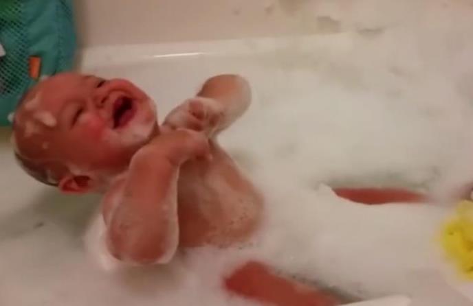 OVA BEBA ĆE VAM ULEPŠATI DAN! Mališan uživa u kupanju, a pena mu je toliko smešna da se zacenjuje! (VIDEO)