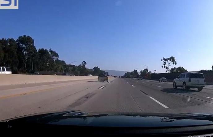 Guma se otkotrljala na levu stranu, a zatim je i šokirani vozač uspeo da skrene u zaustavnu traku i zaustavi vozilo.