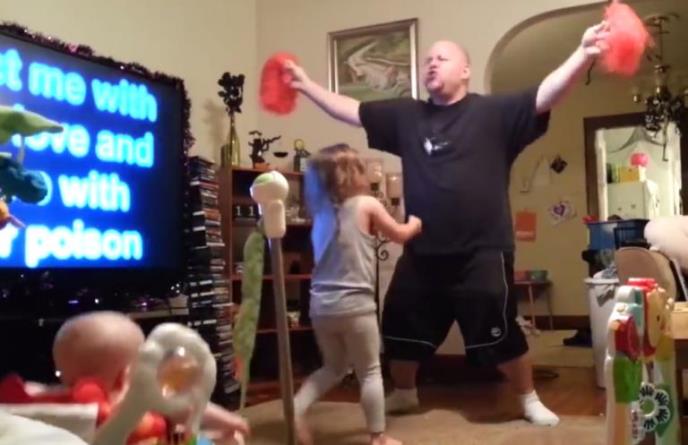 Jednom prilikom ostavila je decu tati na čuvanje, a onda se setila da na kameri može da pogleda kako se njen muž snašao sam sa decom. Usledilo je iznenađenje, tati je ovaj zadatak išao bolje nego što je očekivala. Pustio je muziku, deca su igrala, a onda je on preuzeo pom pom rekvizite i pokazao svoje zavidno igračko umeće.