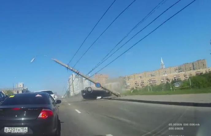 Crni automobil našao se belom u mrtvom uglu, beli naglo pokušao da skrene u desnu traku, udario crnog, izbacio ga sa kolovoza, on krenuo da se prevrće, udario u banderu, završio na krovu, bandera pala, žice počele da varniče. Ovo izgleda kao scenario nekog akcionog filma, ali nije filmska priča, već dramatični događaj sa ulica Moskve.