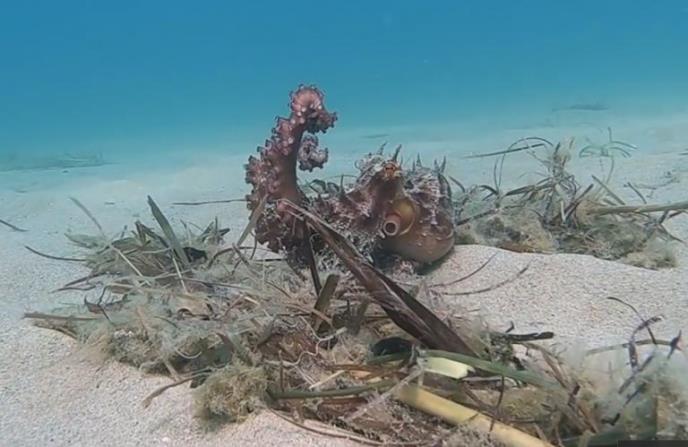 Jedan ronilac snimio je crvenkastu hobotnicu koja je u sekundi promenila boju u svetlo plavu i nestala u dubini mora.