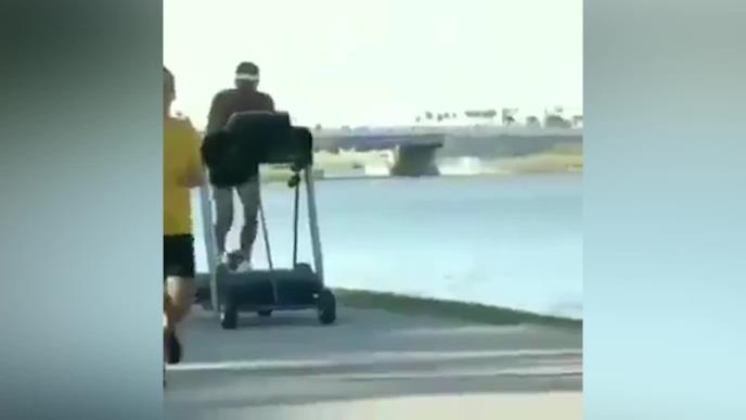SULUDO DŽOGIRANJE! Ovaj čovek koristi traku za trčanje na otvorenom, prolaznici u neverici (VIDEO)
