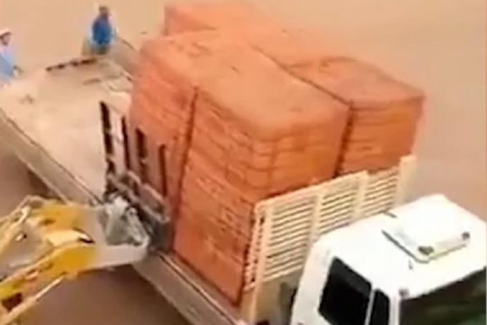 Ovaj viljuškarista je radio "po pe-esu". Prišao lagano kamionu i krenuo da zahvata palete pune zidnih blokova. Pošto mu se učinilo da tovar beži, on je još malo pogurao, ali se ista stvar ponovila. Kako i ne bi kada je stranica kamiona ostala otvorena.