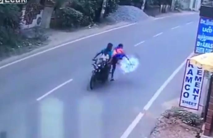Upravo je to postigao. Video je nastao u indijskoj državi Kerali, dva momka voze se na motoru kada dečko koji sedi iza vozača odjednom otvara kišobran, gubi ravnotežu, pada sa vozila u pokretu, udara glavom o beton i gubi svest.
