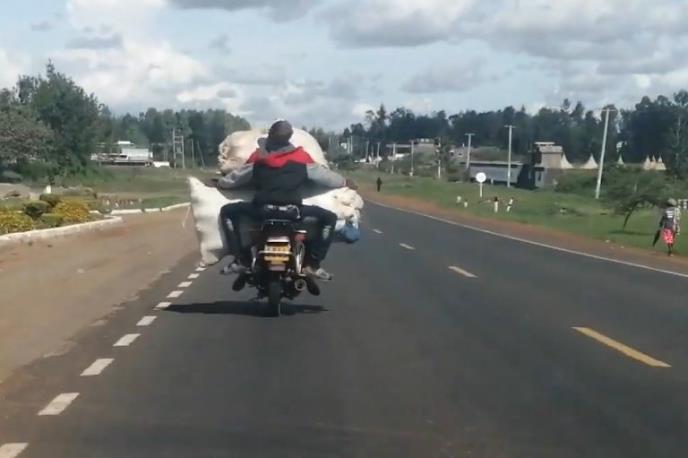 Da bi zaradili za hleb ljudi su u stanju da urade svašta, pa i da ugroze sopstveni život. Upravo to je slučaj sa ovim Kenijcima koji su na motocikl natovarili gomilu džakova i tako izašli na put.