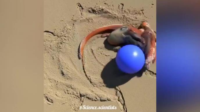 Ko bi ikada mogao da zamisli hobotnicu da se igra na pesku i to još sa loptom?