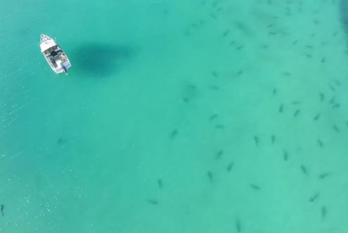 Bio je zaprepašćen onim što je video. U zalivu gde se do maločas kupao plivalo je na stotine ajkula. Sledeći put će dvaput da razmisli pre nego što ode na ronjenje.