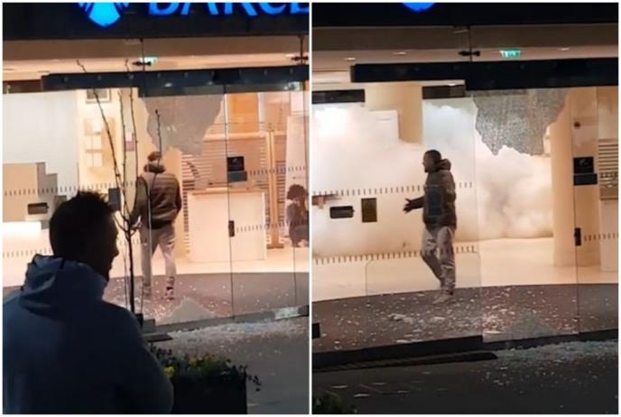 RAZBIO STAKLO I UPAO U BANKU! Posle nekoliko sekundi shvatio je da će ga to skupo koštati! (VIDEO)