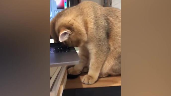 Ova preslatka maca je pravila društvo svom vlasniku dok je radio za laptopom.