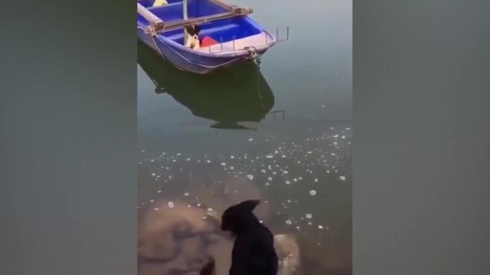 Jedan pas je bio zarobljen u čamcu nasred jezera, a onda je drugi skočio u vodu i uradio nešto neverovatno da mu pomogne.