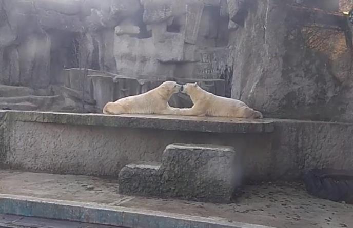 Zoološki vrt u Budimpešti ima najromantičnije polarne medvede. Oni toliko uživaju u svojoj ljubavi da se ne obaziru ni na posetioce, ni na čuvare zoo vrta. Po ceo dan šetaju zajedno, dremaju, gledaju jedno u drugo i ljube se.