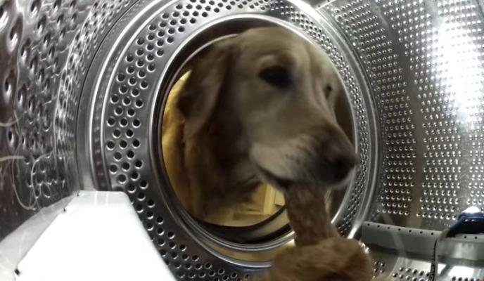 NEVEROVATNI KUĆNI SNIMAK! Zlatni retriver je šetao stanom, a onda je iz veš mašine izvadio nešto fenomenalno (VIDEO)