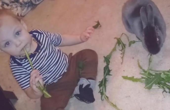 Jednogodišnji Bendži obožava životinje, a pogotovo zečeve po imenu Grej Gaj i Dilajla. Toliko je nežan i pažljiv prema njima da je njegova majka morala da zabeleži kamerom ovo preslatko prijateljstvo od malih nogu.