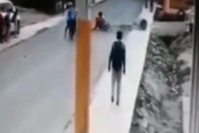 Već u sledećem momentu na kantu je naleteo motociklista sa saputnikom, izgubio je kontrolu nad vozilom i pao sa kolovoz. Na njihovu sreću, brzina kojom su išli nije bila velika, niti je tada neko dolazio iz suprotnog pravca. A vinovnik ove nesreće? On se nimalo nije uzbudio zbog onoga što je uradio, već je nastavio da hoda ulicom, kao da to nema nikakve veze sa njim.