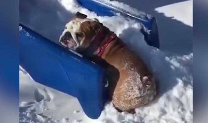 Kučići uglavnom obožavaju sneg! Ali ovaj mališa je oduševljen! Jedna uobičajena šetnja pretvorila se u najzabavniji dan ikada! Odlazak do obližnjeg parka, veselo skakutanje po snegu, a tek kada je otkrio tobogan…njegovoj sreći nije bilo kraja! Pogledajte kako se ovaj snalažljivi buldog dosetio da može da se spusti niz tobogan!
