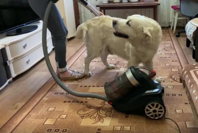 NE MOŽE DA SE ODVOJI OD USISIVAČA! Zlatni retriver totalno POLUDEO kada mu je vlasnica OVO URADILA! (VIDEO)