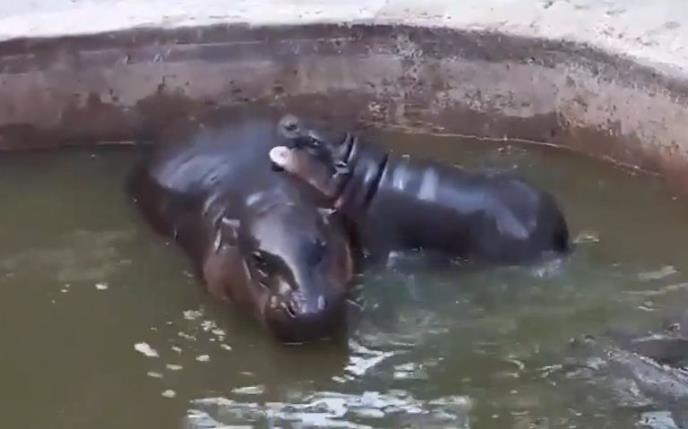 Ova preslatka scena zabeležena je u jednom tajlandskom zoološkom vrtu: dvomesečni nilski konj Mootoon očajnički pokušava da privuče panju svoje majke dok zajedno plivaju u bazenu. Prvo je probao da je gricne, ali ona nije odreagovala. Zatim je nastavio da je gurka, međutim majka ga i dalje ignoriše. Ok, vreme je za poslednji potez. Odlučio je da zagnjuri u vodu, a onda se dramatično okreneo na leđa i potonuo ispod površine kako bi odglumio davljenje! Pogledajte da li je bar ovaj potez izazvao neku reakciju majke!