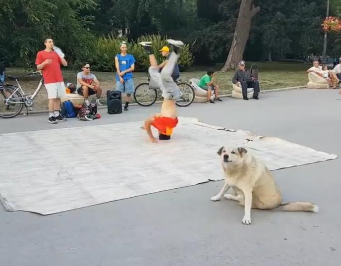 Ovaj pas je difinitivno odlučio da postane deo brejkdens trupe. Privukao je veliku pažnju igrajući pored profesionalnih igrača koji su igrali na ulici, i to na specifičan način. Sedeći na betonu i slušajući muziku, pas je započeo svoj performans okrećući se oko svoje ose. Pored toga, počeo je i da laje prateći muziku. Gledaoci su bili oduševljeni ovim nesvakidašnjim prizorom.