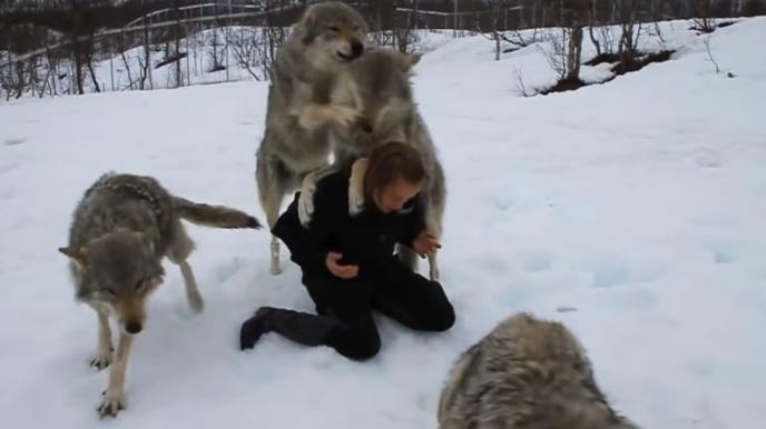Kada je vide vukovi se zalete ka njoj, zagrle je, skaču po njoj, ljube je, zaista neverovatna scena.