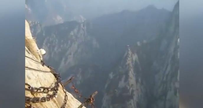 Na planini Hua Šan u centralnoj Kini nalazi se najopasnija staza na svetu. Dok je čovek posmatra od nje ga podilazi jeza, a možete samo da zamislite kako zaista izgleda preći preko nje. Ovaj čovek ne samo da je bio hrabar da ide tom stazom, već je to i zabeležio mobilnim telefonom.