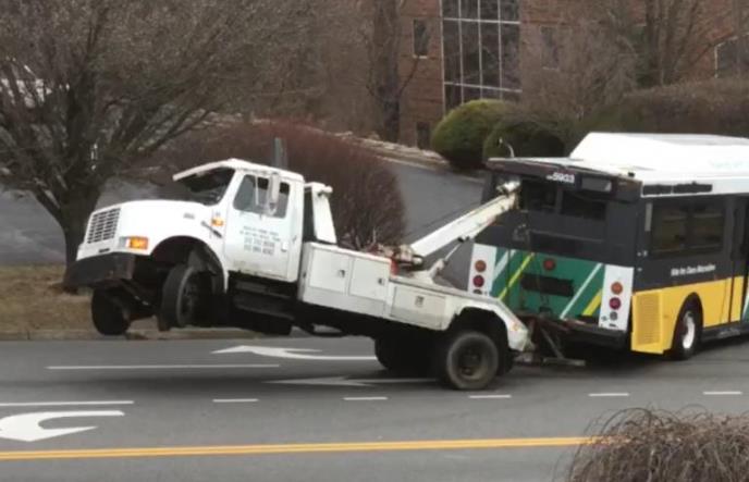 U američkom gradu Harisonburgu došlo je do kvara autobusa. Putnici su napustili vozilo i sačekali drugo, a vozač je ostao i pozvao pomoć. Kako je kvar bio ozbiljniji, autobus je morao biti odšlepan na servis, pa je kamio za vuču došao da ga preveze na popravku.