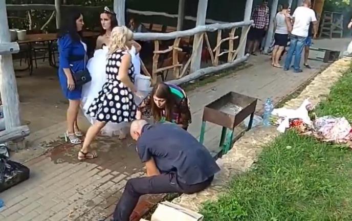 Naime, na ovoj svadbi je došlo do fizičkoj okršaja među gostima u kojem su učestovali i glavni akteri svadbe, mladenci. Udarali su se, gađali sa čime su stigli, uglavnom su to bili buketi cveća, a glavna uloga u ovoj komediji pripala je mladi koja je, pokazala apsolutnu dominaciju nad gostima, udarajući ih. Mlada je zadigla svoju venčanicu, kako bi lakše mogla da koristi i donje ektremitete dok se obračunava sa svojim gostima.