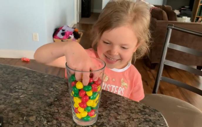 Bombone su sigurno najslađa dečja poslastica. Kao i sva deca, i devojčica sa snimka je pohidala da uzme svoju porciju deserta.