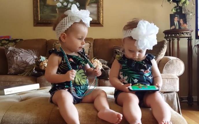Držeći u rukama mobilni telefon i slušajući muziku koju je on emitovan, prva devojčica nije imala apsolutno nikakvu reakciju, dok se druga radovala i igrala