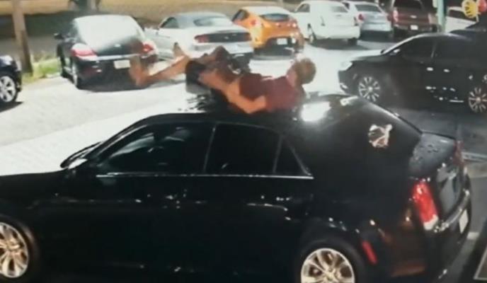 Momak sa snimka pao je na krov automobila na velike visine. Od siline krov automobila se udubio, a nesrećni mladić je pao na leđa udarivši glavu pri padu. Sreća u nesreći je to što je on posle pada najnormalnije bez ikakvih problema skliznuo sa krova automobila, i nastavio da se kreće.