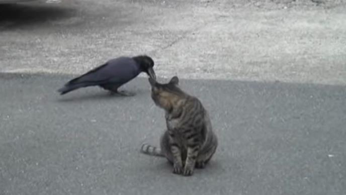 Vrana je samouvereno stigla u kraj i pokazala mačkama da nisu toliko sigurne.