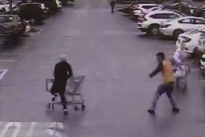 Kada je policija stigla zatekla je na parkingu jednog od lopova, koji se odmah dao u beg. Iako mu je policajac naredio da stane, osumnjičeni je nastavio da trči ka prodavnici Volmart, gde se vrzmalo mnogo kupaca. Jedan od njih, videvši da policajac pokušava da uhvati sumnjivog tipa, gurnuo je svoja kolica tačno ispred lopova i oborio ga na zemlju. Policajcu, naravno, nije trebalo mnogo da ga zgrabi i zadrži do dolaska kolega.