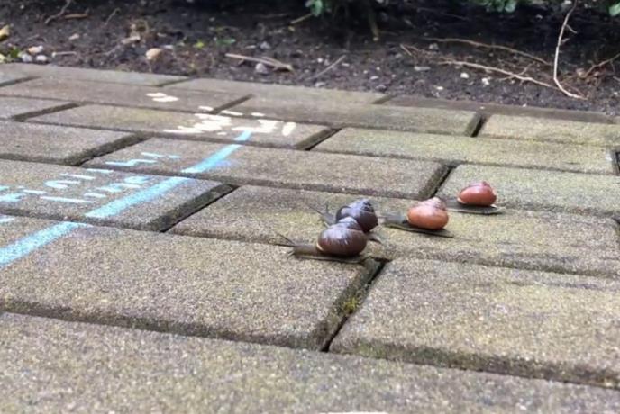 Grupa drugara iz Kanade nacrtala je stazu za četiri puža, snimila njihovu trku, a onda višestruko ubrzala snimak. I, gle čuda, odjednom dobijate utisak da su se životinjice zaista trudile da budu što brže i da pobede svoje protivnike. Naravno, u skladu sa svojim mogućnostima.